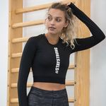 Be bang on-trend with this long sleeve crop that offers you freedom of movement whilst you are working out . The girlie long sleeve crop T is fun and fashionable, yet the performance fabric keeps you cool and dry during your workout.