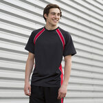 Coolplus® high tech finish enabling moisture transportation (wicking), breathability and also quick dry properties. Slimmer fit T with contrast panelling and piping on side panels. Raglan sleeves for extra freedom of movement.